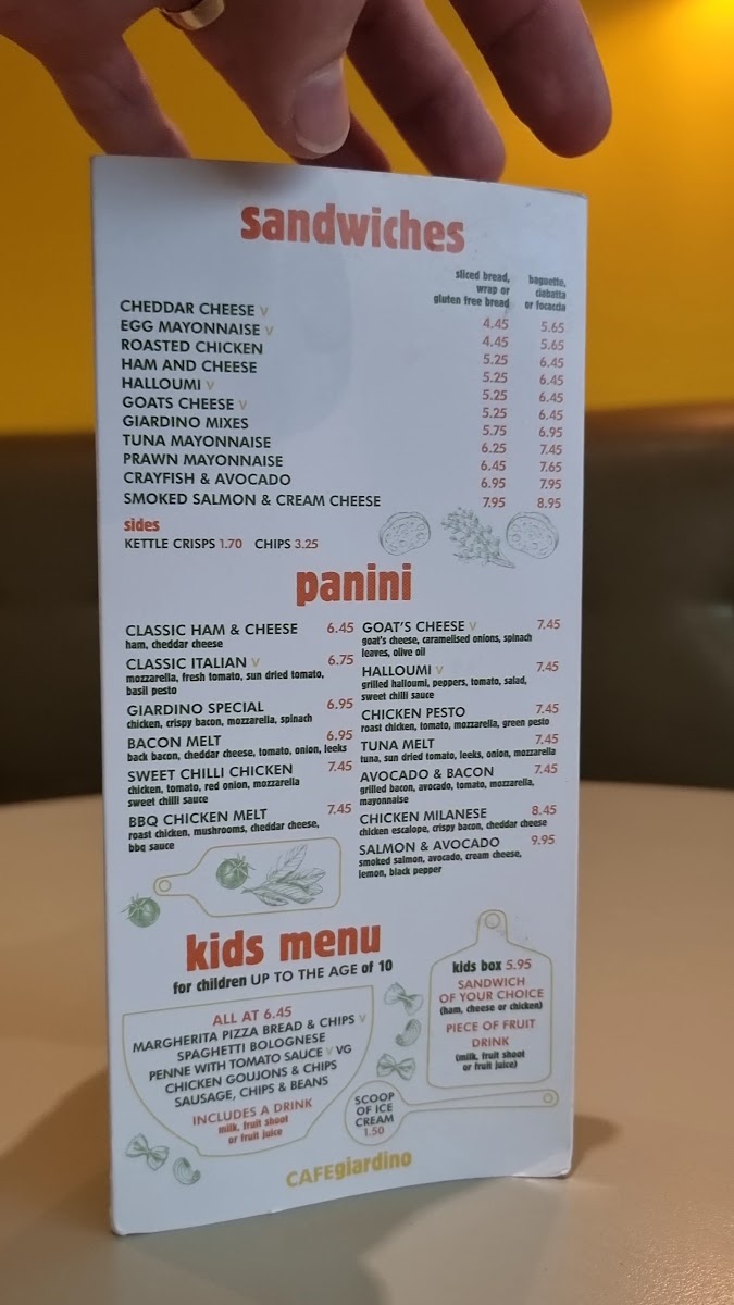 Cafe Giardino Menu